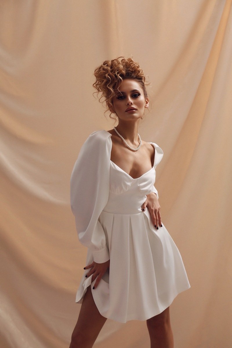 Viclans Satin White Dress with Corset Effect and Pleated Skirt
