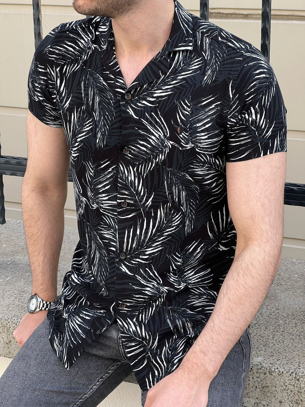 Bojoni Montebello Slim Fit High Quality Short Sleeve Black Shirt