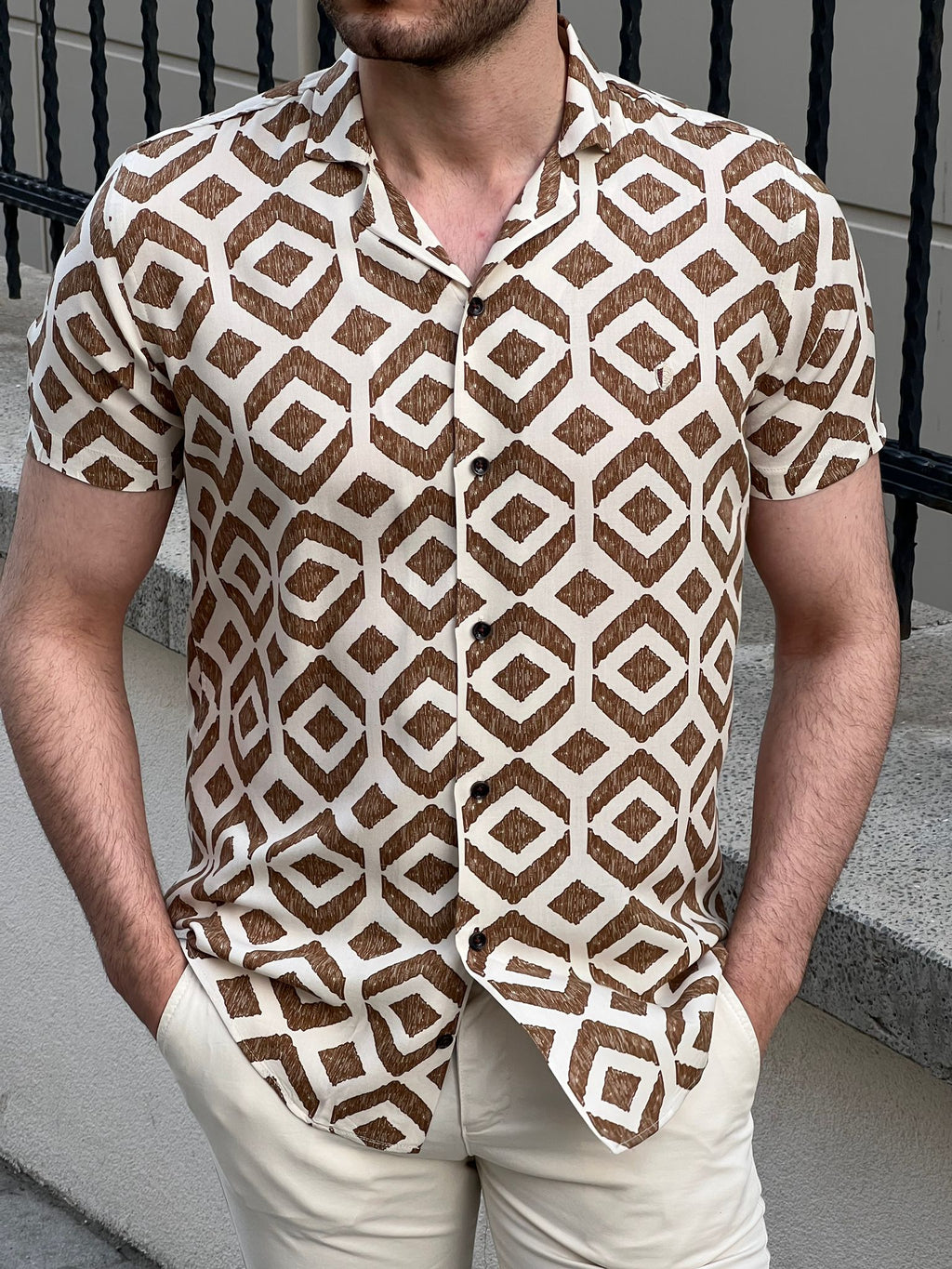 Bojoni Montebello Slim Fit High Quality Short Sleeve Beige Shirt