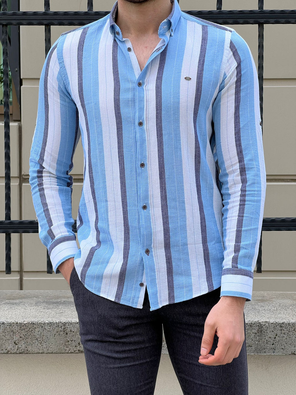 Bojoni Montebello Slim Fit High Quality Striped Needle White & Blue Cotton Shirt