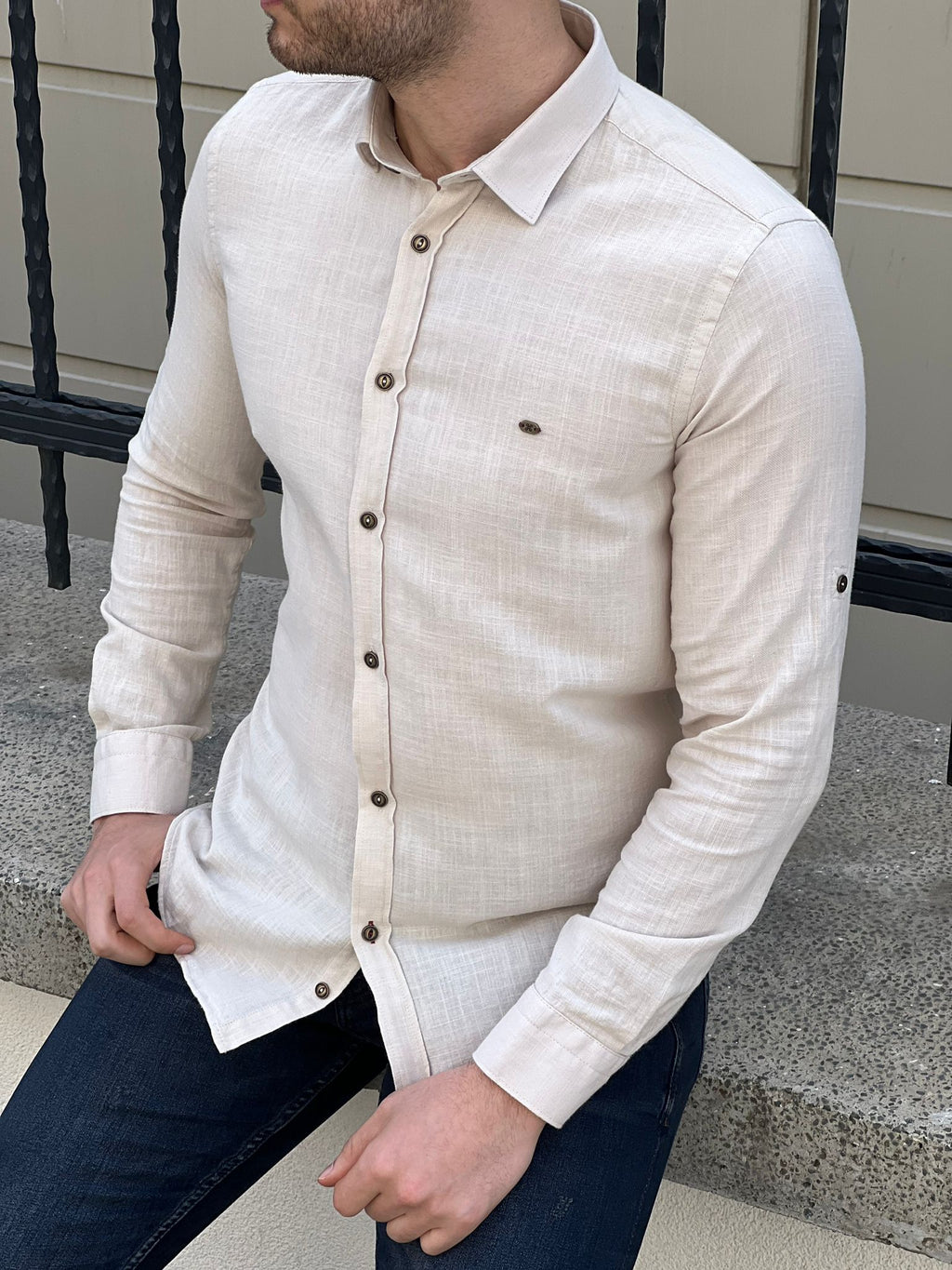 Bojoni Montebello Slim Fit High Quality Foldable Sleeve Beige Shirt